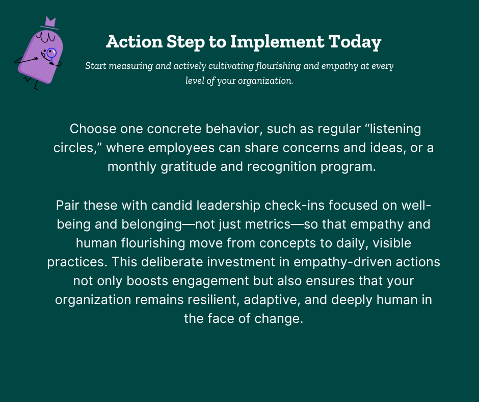 We must embed empathy in every system, measure it as rigorously as productivity, and hold it as a non-negotiable standard in daily behaviors and decisions. When employees feel understood, valued, and meaningfully connected, flourishing becomes not just an ideal, but an achievable—and competitive—reality.​